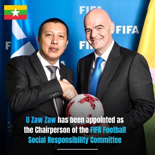 မြန်မာနိုင်ငံဘောလုံးအဖွဲ့ချုပ် (MFF) ဥက္ကဋ္ဌ ဦးဇော်ဇော် ဟာ ကမ္ဘာ့ဘောလုံးအဖွဲ့ချုပ် (FIFA) ရဲ့ လူမှုအကျိုးပြုလုပ်ငန်းကော်မတီ (FIFA Football Social Responsibility Committee) ရဲ့ ဥက္ကဋ္ဌအဖြစ် ရွေးချယ်ခန့်အပ်ခံလိုက်ရကြောင်း သိရပါတယ်။