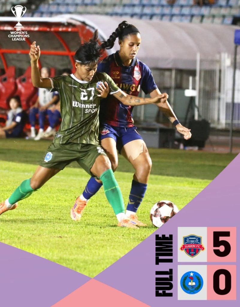 အာရှအမျိုးသမီးချန်ပီယံလိဂ် အုပ်စုအဖွင့်ပွဲစဉ်မှာ တောင်ကိုရီးယားကလပ်ဆူဝမ်အသင်းကို မြန်မာISPE အသင်းကငါးဂိုးပြတ်နဲ့ရှုံးနိမ့်ခဲ့ပါတယ်။