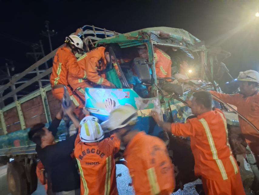 ယာဉ်တိုက်မှု ဖြစ်ပွားရာနေရာကို မင်္ဂလာဒုံမြို့နယ်မီးသတ်စခန်းမှ မီးငြှိမ်းသတ်ယာဉ် (၁) စီး၊ သန္ဓေမီးသတ်တပ်ဖွဲ့ဝင်များက ကယ်ဆယ်ရေးလုပ်ငန်းများသွားရာက်ဆောင်ရွက်ခဲ့ကြပြီး ထိခိုက်ဒဏ်ရာများ (မစိုးရိမ်ရ) ရရှိခဲ့တဲ့ အမျိုးသား (၂) ဦးကို ရွှေဧကရာဇ်လူမှုကူညီရေးအသင်း နှင့် ဗာကုလလူမှုကူညီရေးအသင်း တို့မှ လူနာတင်ယာဉ်များဖြင့် အင်းစိန်မြို့နယ်ပြည်သူ့ဆေးရုံကြီးသို့ အရေးပေါ် ပို့ဆောင်ပေးခဲ့ကြောင်း သိရပါတယ်။