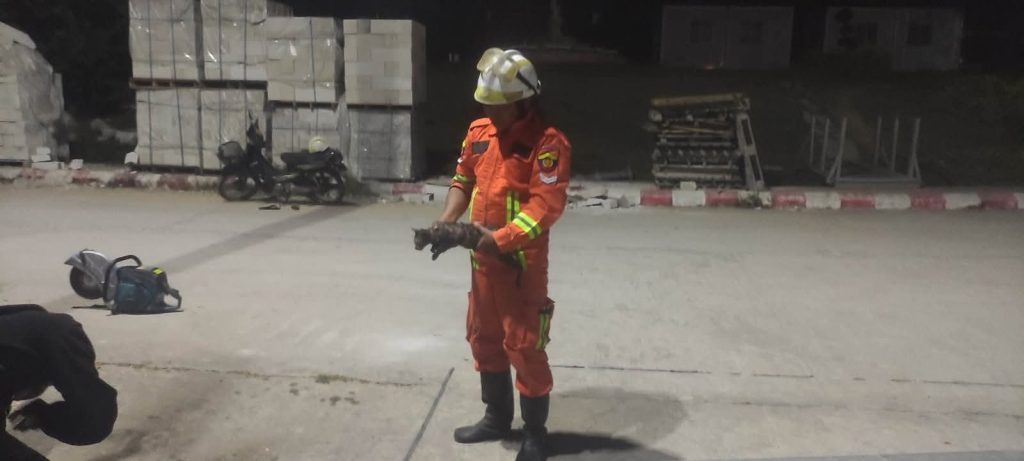 ကယ်ဆယ်ရေး လုပ်ငန်းစဉ်တွေကို ဇမ္ဗူသီရိမြို့နယ်မီးသတ်စခန်းမှ သန္ဓေမီးသတ်တပ်ဖွဲ့ဝင်များက ဆောင်ရွက်ပေးခဲ့ပြီး ကြောင်လေးကို ကယ်ဆယ်နိုင်ခဲ့တယ်လို့ သိရပါတယ်။