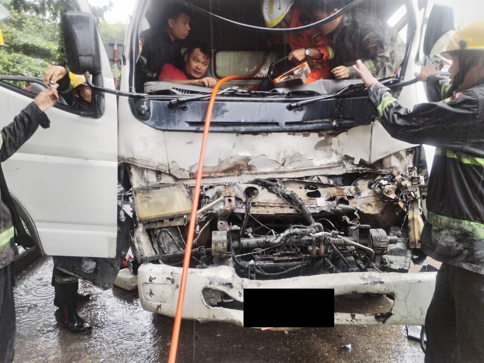 ရန်ကုန်-နေပြည်တော် အမြန်လမ်းမပေါ် Express ယာဉ် အင်ဂျင်အပူလွန်ကဲပြီး မီးလောင်
