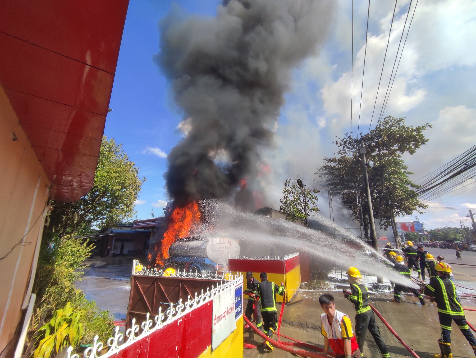 ဘားအံမြို့တွင် ဆီဆိုင်မီးလောင်မှုဖြစ်ပွား၊ မီးသတ်ယာဉ် ၁၅ စီးဖြင့် ငြှိမ်းသတ်ခဲ့ရ
