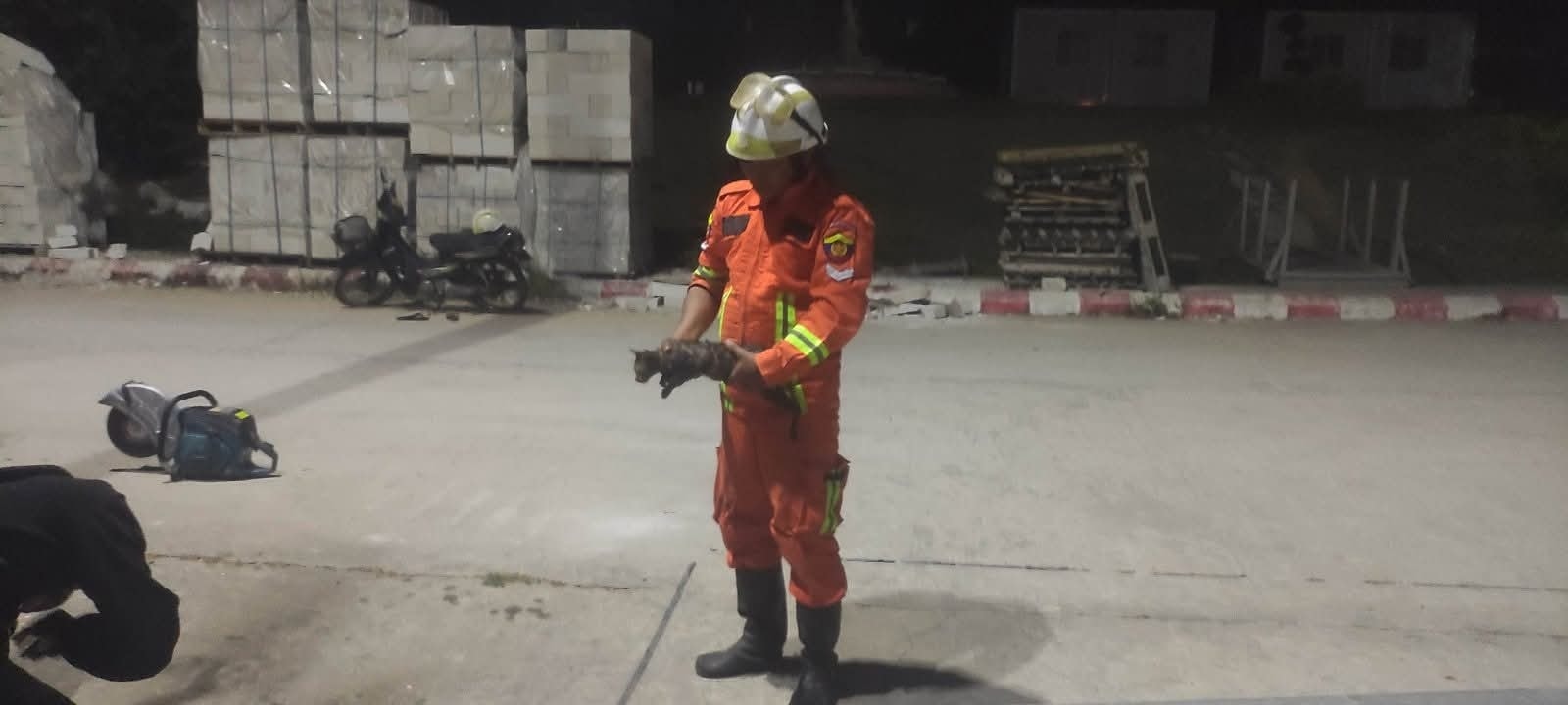 သံပိုက်လုံးထဲတွင် ပိတ်မိနေသည့် ကြောင်ကို မီးသတ်မှကယ်ဆယ်နိုင်ခဲ့