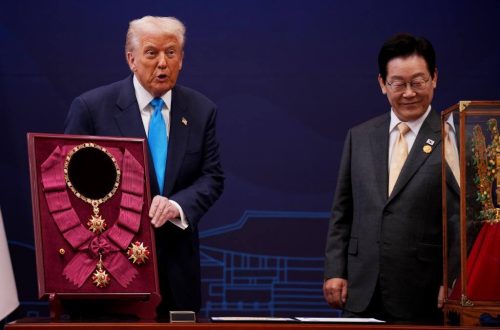၂၀၂၅၊အောက်တိုဘာလ၊၃၀ရက် တောင်ကိုရီးယားသမ္မတ လီ ဂျေမြောင်နဲ့ အမေရိကန်သမ္မတ ဒေါ်နယ်လ် ထရမ့်တို့ ခေါင်းဆောင်နှစ်ဦးရဲ့ မနေ့က ဆွေးနွေးပွဲများအပြီးမှာ အမေရိကန်နှင့်