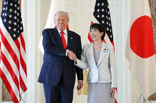 ၂၀၂၅၊အောက်တိုဘာလ၊၂၈ရက် အာရှခရီးစဉ်အဖြစ် ဂျပန်နိုင်ငံကို ရောက်ရှိနေတဲ့ အမေရိကန်သမ္မတ ဒေါ်နယ်လ် ထရမ့်ဟာ ဂျပန်နိုင်ငံရဲ့ အသစ်ရွေးချယ်ခံရတဲ့ ကွန်ဆာဗေးတစ်ခေါင်းဆောင်၊ ပထမဆုံး