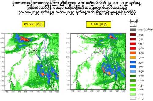 —————————————————————————————————– ၂၀၂၅ခုနှစ်၊အောက်တိုဘာလ၊(၃၀)ရက် လေပွေလှိုင်းတွေရဲ့အရှိန်နဲ့ လေထုမငြိမ်မသက်မှုတွေကြောင့် အောက်တိုဘာလ(၃၁)ရက်မှနိုဝင်ဘာလ(၅)ရက်မှာ နိုင်ငံတစ်ဝှမ်း မိုးကြီးခြင်းတွေ ဖြစ်ပေါ်နိုင်တယ်လို့ မိုးလေဝသနှင့်ဇလဗေဒညွှန်ကြားမှုဦးစီးဌာနမှ သိရပါတယ်။ စစ်ကိုင်းတိုင်းဒေသကြီး၊