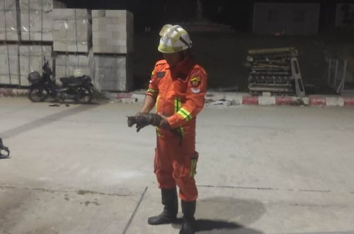 သံပိုက်လုံးထဲတွင် ပိတ်မိနေသည့် ကြောင်ကို မီးသတ်မှကယ်ဆယ်နိုင်ခဲ့