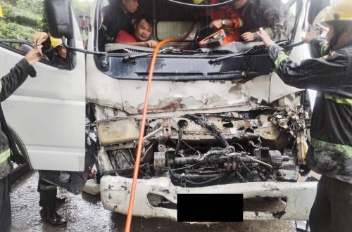 ရန်ကုန်-နေပြည်တော် အမြန်လမ်းမပေါ် Express ယာဉ် အင်ဂျင်အပူလွန်ကဲပြီး မီးလောင်