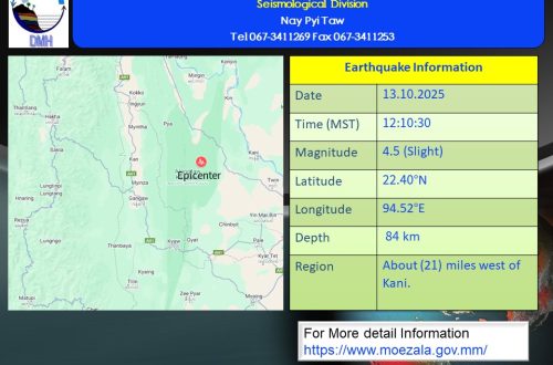 ၂၀၂၅၊အောက်တိုဘာလ၊၁၃ရက် ၂၀၂၅ ခုနှစ်၊ အောက်တိုဘာလ ၁၃ ရက်နေ့ မွန်းလွဲပိုင်းမှာ စစ်ကိုင်းတိုင်းဒေသကြီး၊ကနီမြို့ ရဲ့ အနောက်ဘက် မိုင်