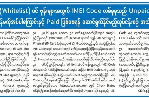 ၂၀၂၆၊ဧပြီလ၊၂ရက် ခွင့်ပြုစာရင်း (Whitelist) ဝင် ဖုန်းများအတွက် IMEI Code တစ်ခုခု Unpaid ဖြစ်နေပါက အခွန်ပေးဆောင်ရန်